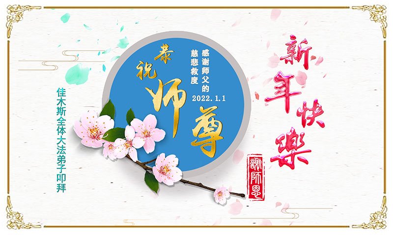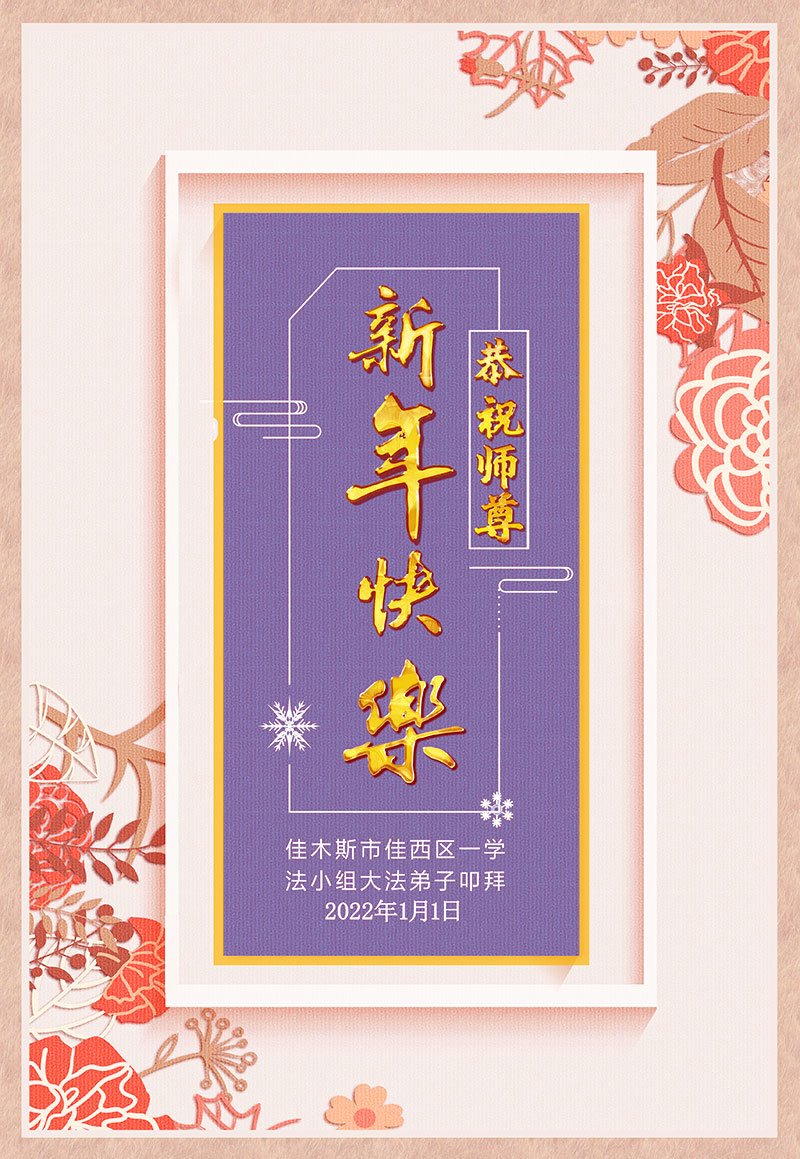 【明慧网二零二一年十二月三十一日】 黑龙江省佳木斯地区大法弟子郑氏家族恭祝慈悲伟大的师尊新年快乐!