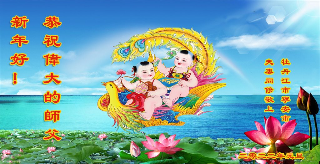 恭祝慈悲伟大的师父新年快乐!感谢师父慈悲救度!在正法的修炼路上,磕磕绊绊走到今天,谢谢师父的一路保护! 大法弟子姐妹俩敬上 黑龙江省牡丹江市宁安市一大法弟子恭祝慈悲伟大的师父新年快乐!