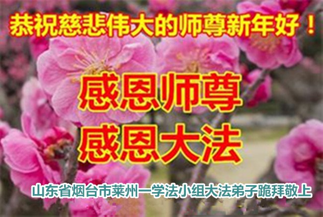 山东省烟台市莱州一名大法弟子恭祝慈悲伟大的师尊新年快乐! 山东省烟台市莱州一学法小组大法弟子恭祝慈悲伟大的师尊新年快乐!
