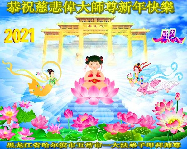师尊过年好!弟子跪拜! 这一年中弟子又有了较大的提高。弟子感恩法给弟子的指导,离开法弟子寸步难行,弟子要多学法、学好法,做好三件事,不负师尊苦度!感恩师尊! 黑龙江省哈尔滨市五常市一大法弟子恭祝师尊过年好!