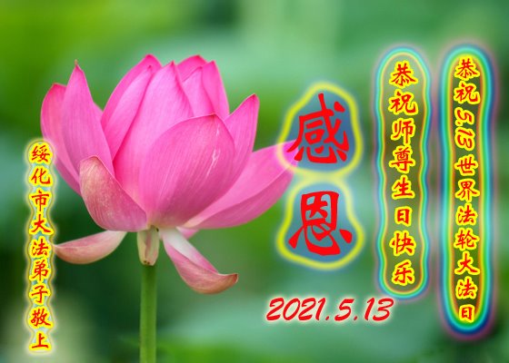 【明慧网二零二一年五月十三日】 黑龙江省七台河市勃利县铁西一大法弟子恭祝慈悲伟大的师尊生日快乐!
