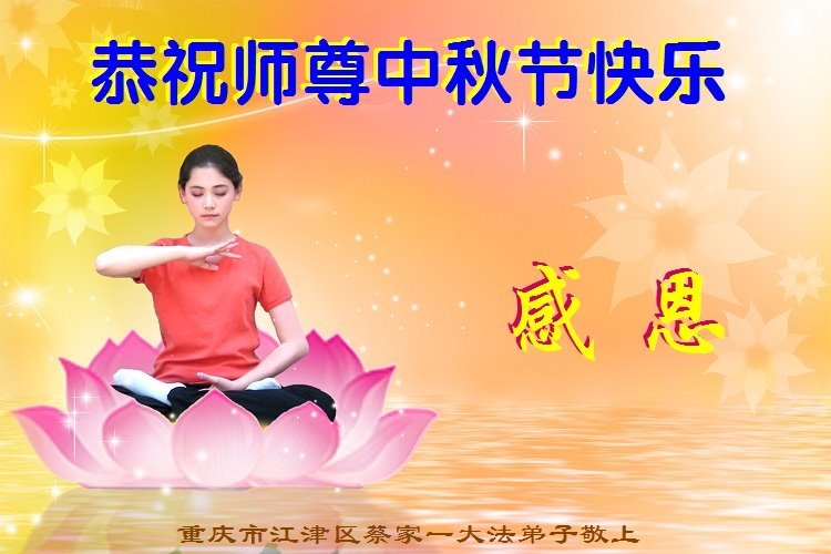 恭祝师父中秋快乐! 弟子感恩师父慈悲救度!我们听您的话,修好自己,做好三件事,证实大法,多救众生! 重庆市沙坪坝区一大法弟子恭祝慈悲伟大的师尊中秋节快乐!