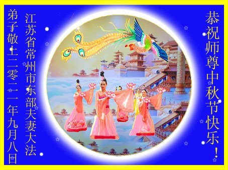 江苏省常州市东部夫妻大法弟子恭祝慈悲伟大师尊中秋节快乐!