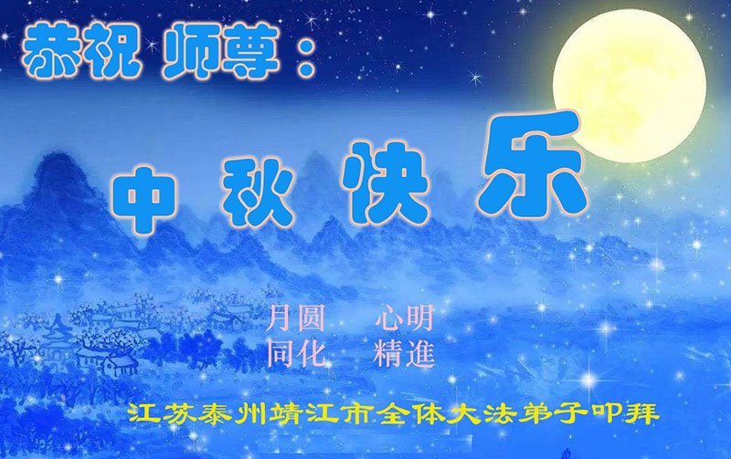 【明慧网二零二一年九月十九日】 江苏省泰州市靖江市一大法弟子恭祝师尊中秋节快乐!