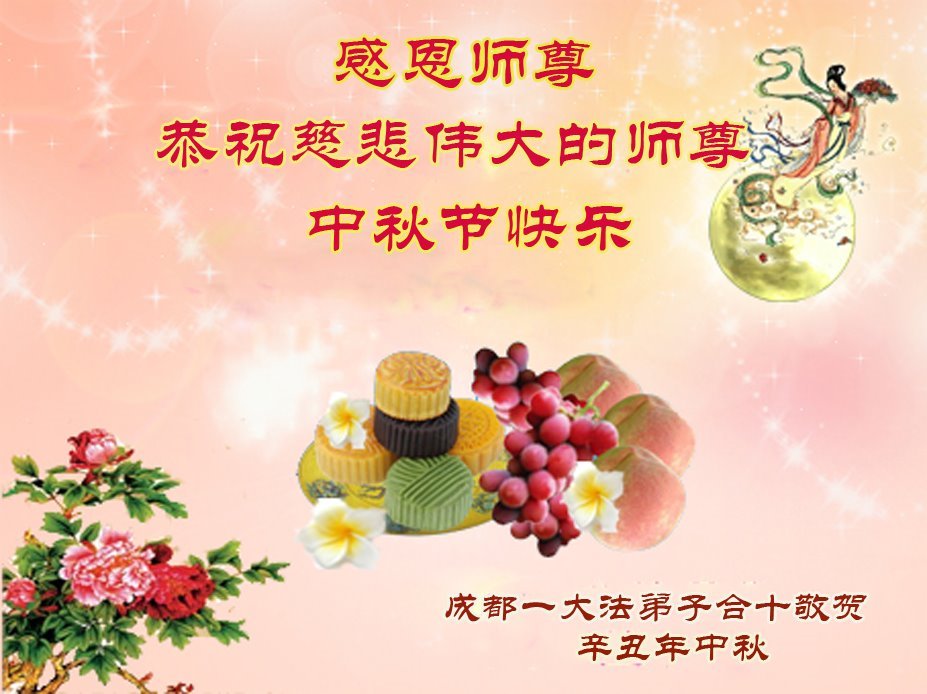 恭祝师尊中秋快乐!谢谢师尊慈悲救度之恩!弟子们恭祝师尊中秋快乐!成都四位大法弟子恭贺! 四川省成都众大法弟子恭祝师尊中秋快乐!