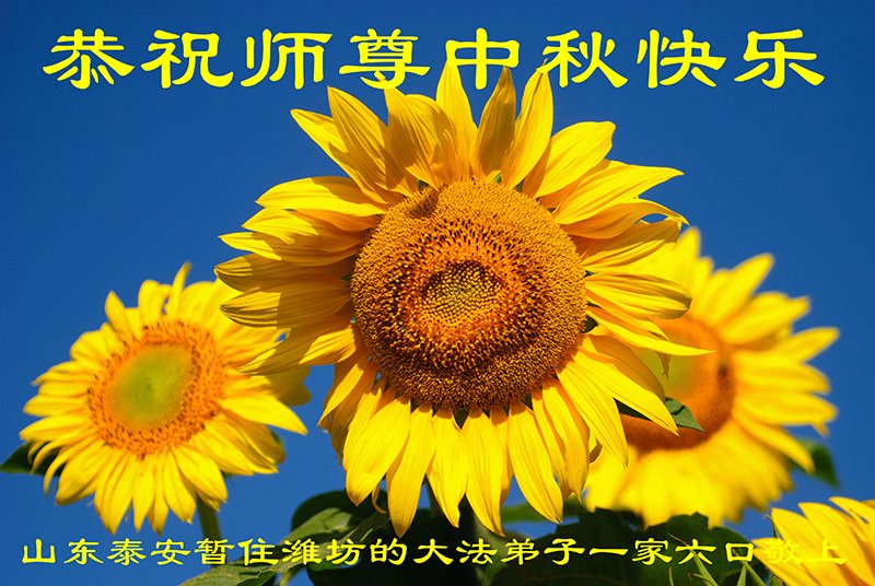 潍坊大法弟子恭祝师尊中秋快乐! 山东泰安暂住潍坊的大法弟子一家恭祝师尊中秋快乐!