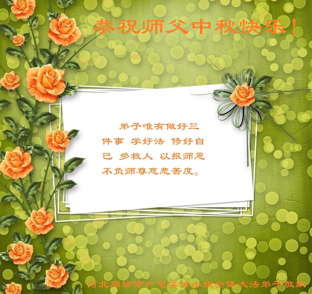 河北廊坊燕郊一学法小组大法弟子敬贺伟大慈悲的师父中秋节快乐!
