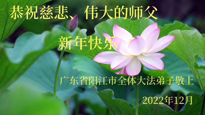 【明慧网二零二二年十二月二十九日】 广东省揭阳市普宁市大法弟子恭祝慈悲伟大的师尊元旦快乐!