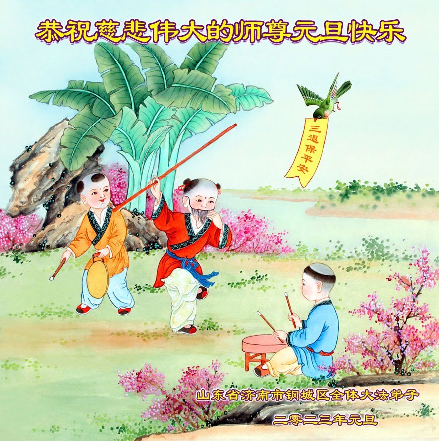 【明慧网二零二二年十二月三十一日】 山东省济南市钢城区全体大法弟子恭祝慈悲伟大的师尊元旦快乐!