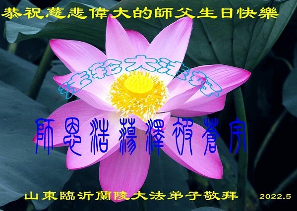 【明慧网二零二二年五月十一日】 山东临沂兰陵县大法弟子恭祝师尊生日快乐!恭贺世界法轮大法日!