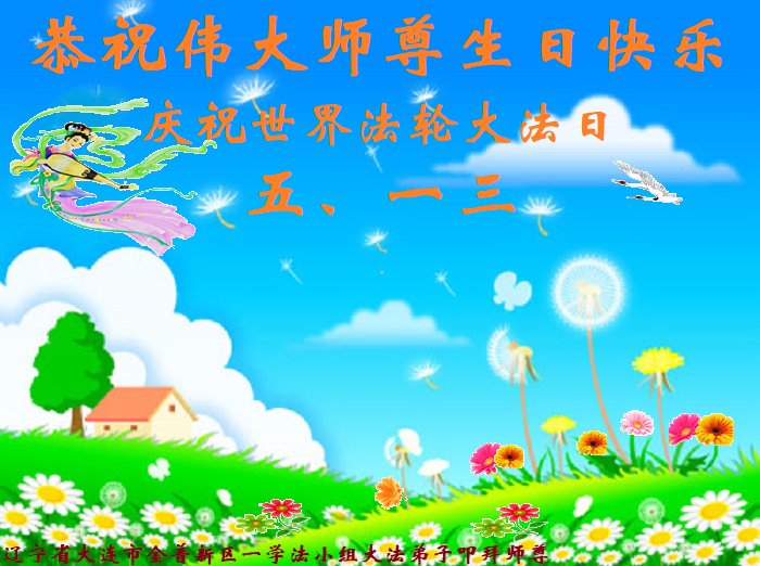 恭祝慈悲伟大师尊生日快乐! 庆祝世界法轮大法日! 辽宁省大连大法弟子恭祝师尊生日快乐!普天同庆世界法轮大法日!