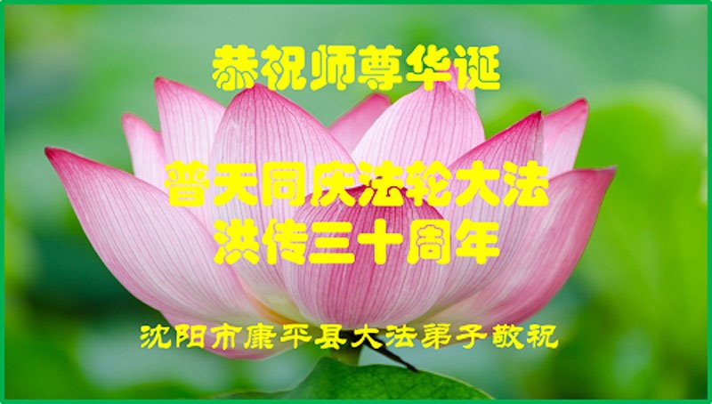值此法轮大法洪传三十周年之际,辽宁沈阳一大法弟子及女儿恭祝师尊生日快乐! 辽宁省沈阳市康平县大法弟子敬贺法轮大法日!