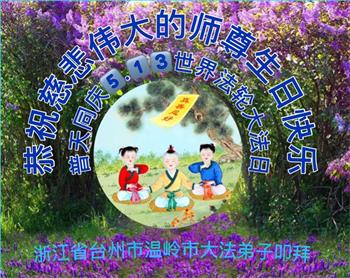 弟子们跪拜谢师恩!感谢师尊慈悲救度! 浙江省台州市温岭市大法弟子普天同庆世界法轮大法日!恭祝慈悲伟大的师尊生日快乐!