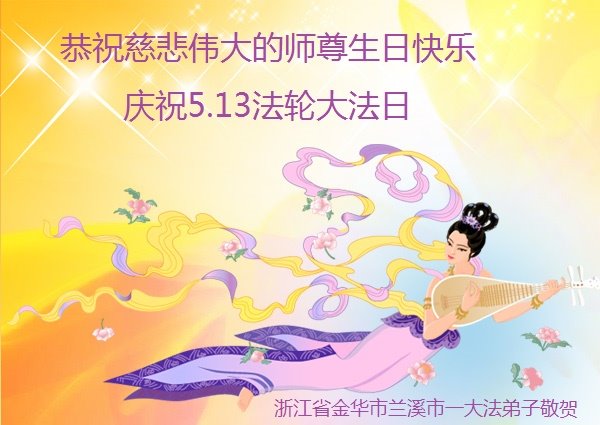 浙江省金华市兰溪市一位大法弟子恭祝慈悲伟大的师尊生日快乐!庆祝世界法轮大法日!