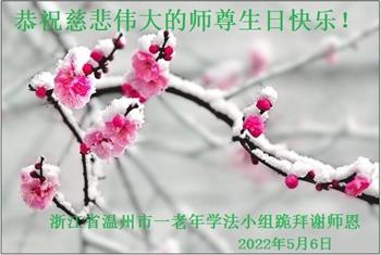 浙江省温州一学法小组全体大法弟子恭祝慈悲伟大的师尊生日快乐!恭贺世界法轮大法日!