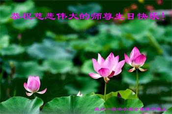 师父您好:您辛苦了,弟子想念您,用语言无法言表师父救度之恩,只有多学法、学好法,修好自己,全盘否定旧势力的一切安排,走正师父安排的修炼道路,正念正行多救众生。 浙江省丽水市明真相世人庆祝世界法轮大法日!恭祝慈悲伟大的大法师父生日快乐!