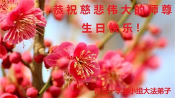 山东青岛一学法小组大法弟子恭祝慈悲伟大的师尊生日快乐!