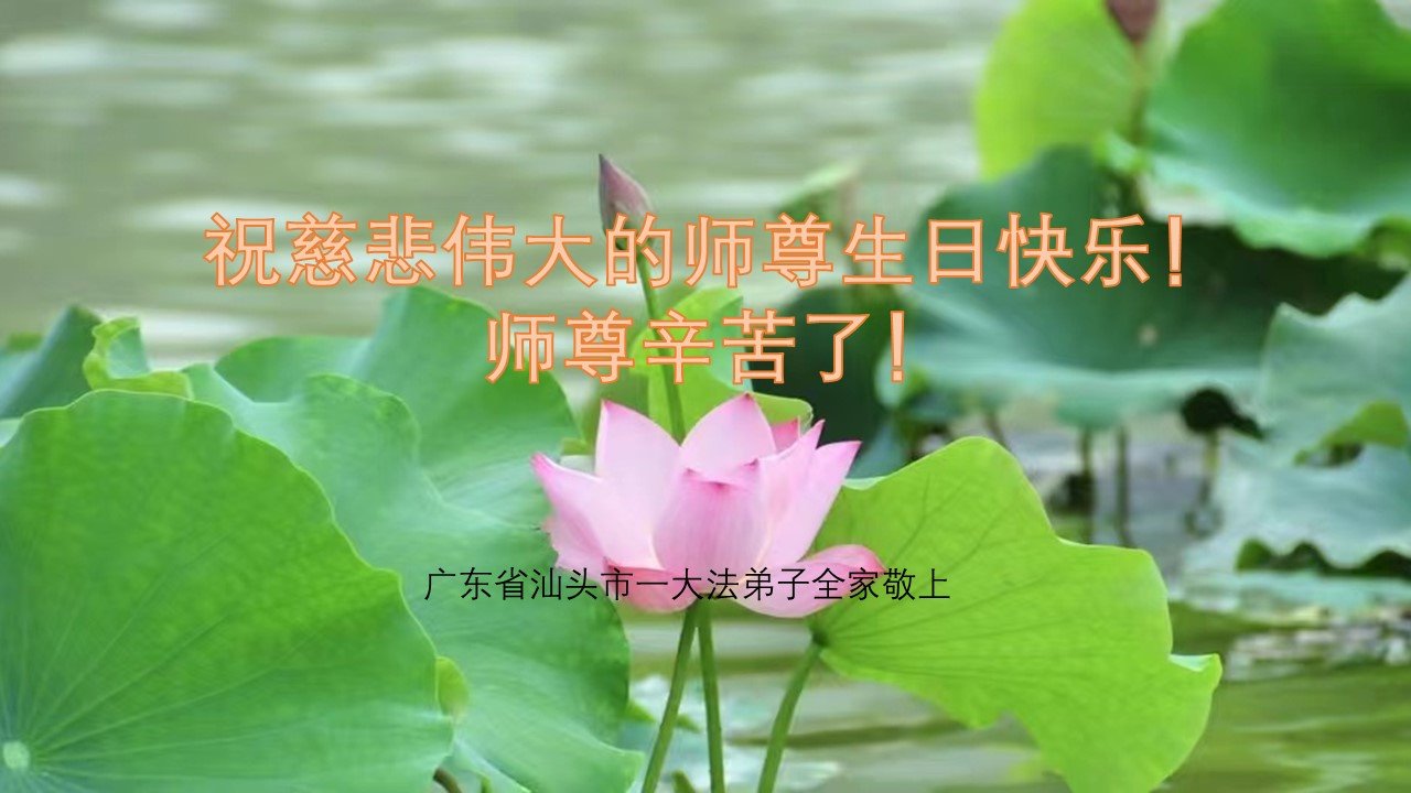 广东省汕头一大法弟子全家敬贺法轮大法日!祝师尊生日快乐!师尊辛苦了!