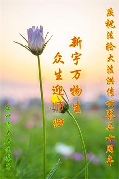 在这普天同庆、众生欢腾的“五·一三”世界法轮大法日即将到来的神圣时刻,弟子怀着无比感恩的心情恭祝慈悲伟大的师尊生日快乐!师尊您辛苦了! 在十六年的修炼路上,每时每刻都离不开师尊的慈悲加持与保护,弟子们的每一步提高都离不开师尊的点悟与付出。在学法中,宇宙的法理如甘泉般滋润着弟子们的心田,启悟着弟子们的正念。每遇到矛盾时,师尊的谆谆教诲就会涌入心田,时刻向内找,矛盾就会瞬间解决;每遇到魔难与痛苦时,就会想起师尊的话,这时,我就会泪流满面,想起寄予我无限希望的无量众生,于是鼓起勇气,在学法中坚定正念,不断的前行。师尊啊!没有您,就没有弟子的一切。弟子会倍加珍惜这万古不遇的机缘,希望在师尊用巨大承受为弟子们延续来的最后的宝贵时间里,更加精進实修,救度更多众生,完成神圣的历史使命,圆满跟师尊回家。期盼师尊早日回家乡和弟子们团聚。再一次恭祝慈悲伟大的师尊生日快乐! 叩拜谢师恩!合十 吉林省长春市一大法弟子庆祝“五·一三”世界法轮大法日暨师尊华诞!