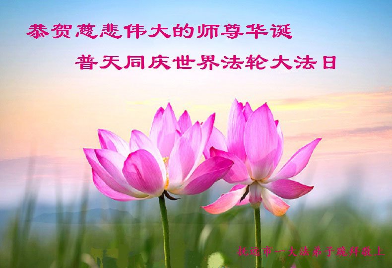 感恩师尊慈悲救度!师父您辛苦了!弟子叩拜谢师恩! 佳木斯市桦川县一家三位大法弟子敬上 黑龙江省佳木斯市富锦市一大法弟子携家人七口恭祝师尊生日快乐!恭贺世界法轮大法日!