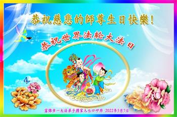 【明慧网二零二二年五月十一日】 黑龙江省抚远市一大法弟子恭祝师尊生日快乐!恭贺世界法轮大法日!