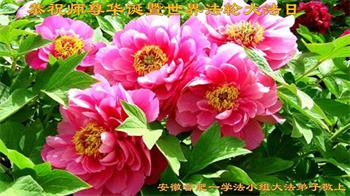 有幸成为师尊的弟子是我们最大的荣耀!不管遇到多大的困难,我们都在大法的法理中去悟、修好自己、不被干扰。在以后的修炼中,我们要更好的学好法、在大法的法理中修好自己、提高自己。跟上正法進程,不辜负师尊的慈悲救度。 安徽合肥大法弟子恭贺世界法轮大法日!恭祝师尊生日快乐!