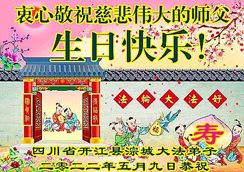 四川省开江县淙城大法弟子恭祝师尊生日快乐!恭贺世界法轮大法日!