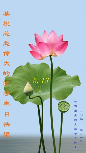 今年恰逢法轮大法弘传三十周年,在这普天同庆的日子,广东省佛山市禅城区一学法小组大法弟子满怀感恩双手合十,恭祝师父生日快乐! 广东省珠海全体大法弟子恭贺世界法轮大法日!恭祝师尊生日快乐!
