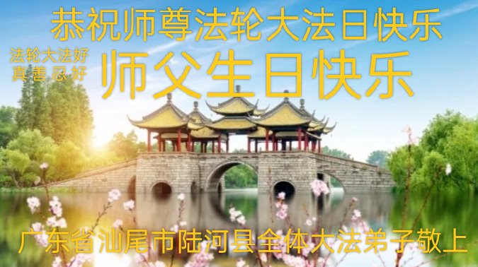 广东省汕尾市陆河县大法弟子恭祝师父生日快乐!恭贺法轮大法日!法轮大法好,真善忍好!