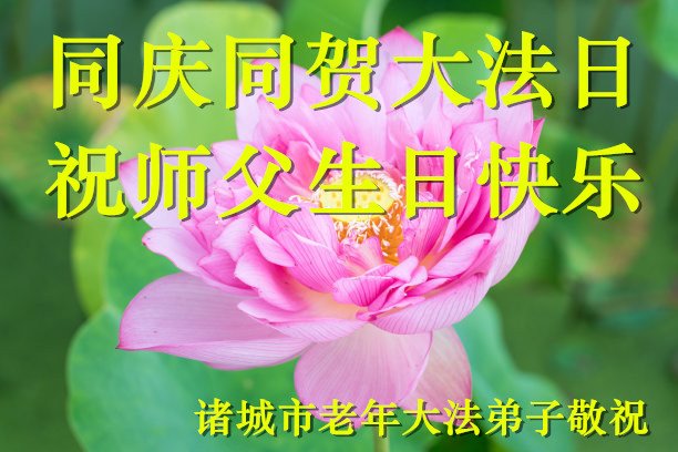 修炼大法后,我才知道大法的珍贵。得到大法是我的夙愿,助师正法是我的责任。我要履行我的愿望,多救人,完成使命。时间过的真快,转眼又是一年庆祝日,真诚的祝师父生日快乐! 山东省潍坊市诸城市大法弟子一家人恭贺法轮大法日!恭祝师父生日快乐!
