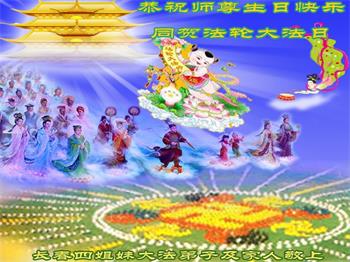 感谢师父慈悲苦度!弟子用千言万语也表达不了对师父的感恩之心,唯有精進、精進、再精進,努力做好三件事,学好法,多救人,助师世间行。 吉林省长春一学法小组大法弟子恭祝师尊生日快乐!恭贺世界法轮大法日!