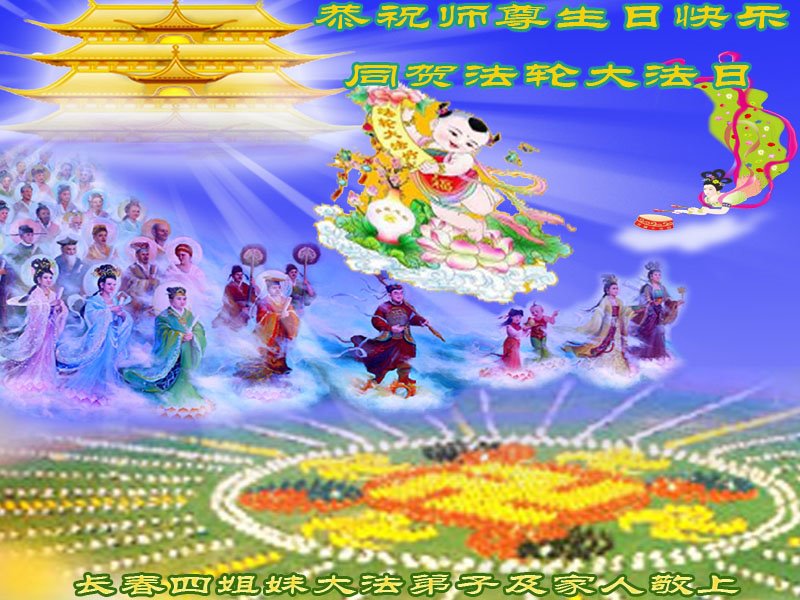 感恩师父慈悲救度!我一定学好法,多救人,随师把家还。 吉林长春四姐妹大法弟子及家人恭祝师尊生日快乐!恭贺世界法轮大法日!