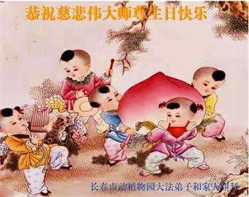 值此普天同庆世界法轮大法日之际,千言万语汇成一句话:感谢慈悲伟大的师尊慈悲普度,师尊您辛苦了。弟子唯有做好三件事,走正正法修炼之路,来回报师尊,惟愿师尊笑。 吉林省长春动植物园大法弟子和家人恭祝慈悲伟大的师尊生日快乐!