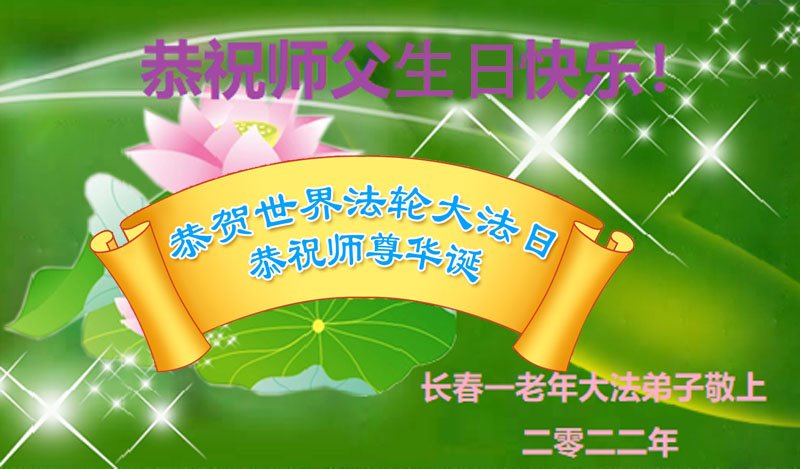 吉林省长春一老年大法弟子恭祝师父生日快乐!恭贺世界法轮大法日!