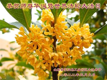【明慧网二零二二年五月十四日】 山东省临沂市蒙阴县工业园区大法弟子恭贺师尊华诞暨世界法轮大法日!