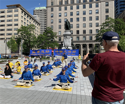 【明慧网二零二二年六月十四日】二零二二年六月十一日,加拿大蒙特利尔部分法轮功学员在市中心菲利浦广场,以集体炼功、天国乐团演奏、征签等方式,告诉人们法轮大法的美好,以及中共迫害法轮功的真相,得到各界民众的支持。 图 1:二零二二年六月十一日,蒙特利尔部分法轮功学员在市中心菲利浦广场举办活动,传播法轮大法的真相。 |
