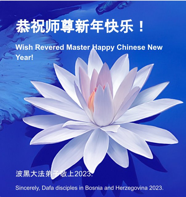 | 【明慧网二零二三年一月二十二日】(明慧网记者综合报道)新年复始,万象更新,全世界的法轮大法弟子无限感恩李洪志师尊的慈悲救度!叩拜师尊过年好! 师尊在末法末劫时亲传宇宙大法,救度无量众生于危难。正法时期的大法弟子们得师尊亲传,并肩负救人使命,深感莫大的幸福与荣耀!众生在期盼得救,世间是宇宙众神瞩目的焦点,大法弟子一定不辱使命,奋力精進,证实大法,救度众生。 在2023年中国传统大年到来之际,来自美国、加拿大、德国、芬兰、荷兰、奥地利、波兰、捷克、俄罗斯、丹麦、瑞典、日本、韩国、泰国、澳大利亚、新西兰、巴拉圭、台湾、香港、印度尼西亚、印度、巴西、哥伦比亚、马来西亚、爱尔兰、阿联酋、波黑、奥地利、瑞士、厄瓜多尔、法国、英国、比利时、苏格兰、越南、菲律宾、新加坡、阿根廷、台湾、澳门、香港、老挝、哈萨克斯坦、伊朗、阿富汗、沙特阿拉伯、帕劳、乌克兰、保加利亚、匈牙利、罗马利亚、挪威、立陶宛、西班牙、意大利、土耳其、马其顿、塞尔维亚、克罗地亚、加蓬等国家和地区的大法弟子恭祝师尊过年好! 世界各国各地参加法轮功线上教功的大法弟子恭祝师尊过年好!