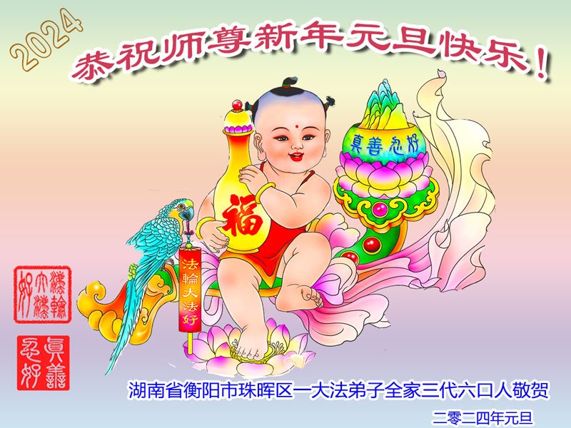 恭祝师尊新年快乐! 感恩师尊一再延续我母亲的生命!师父为弟子们操尽了心,弟子无以言表,只有精進实修以报师恩。 叩拜恩师 湖南省邵阳县一大法弟子携明真相家人敬上 湖南省衡阳市祁东县大法弟子一家七口恭祝慈悲伟大的师尊新年好!新年快乐!