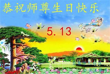 【明慧网二零二三年五月十一日】 吉林省长春静安路大法弟子恭祝师父生日快乐!庆祝五·一三世界法轮大法日!