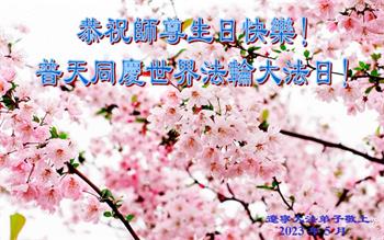 值此五∙一三世界慈悲法轮大法日来临之际,我们家乡大法弟子祝贺伟大的师父生日快乐!我们继续按照师父的要求,做好三件事,在修好自己的基础上,助师正法,救度众生。 辽宁省丹东市孤山地区大法弟子敬上 二零二三年五月十二日 |