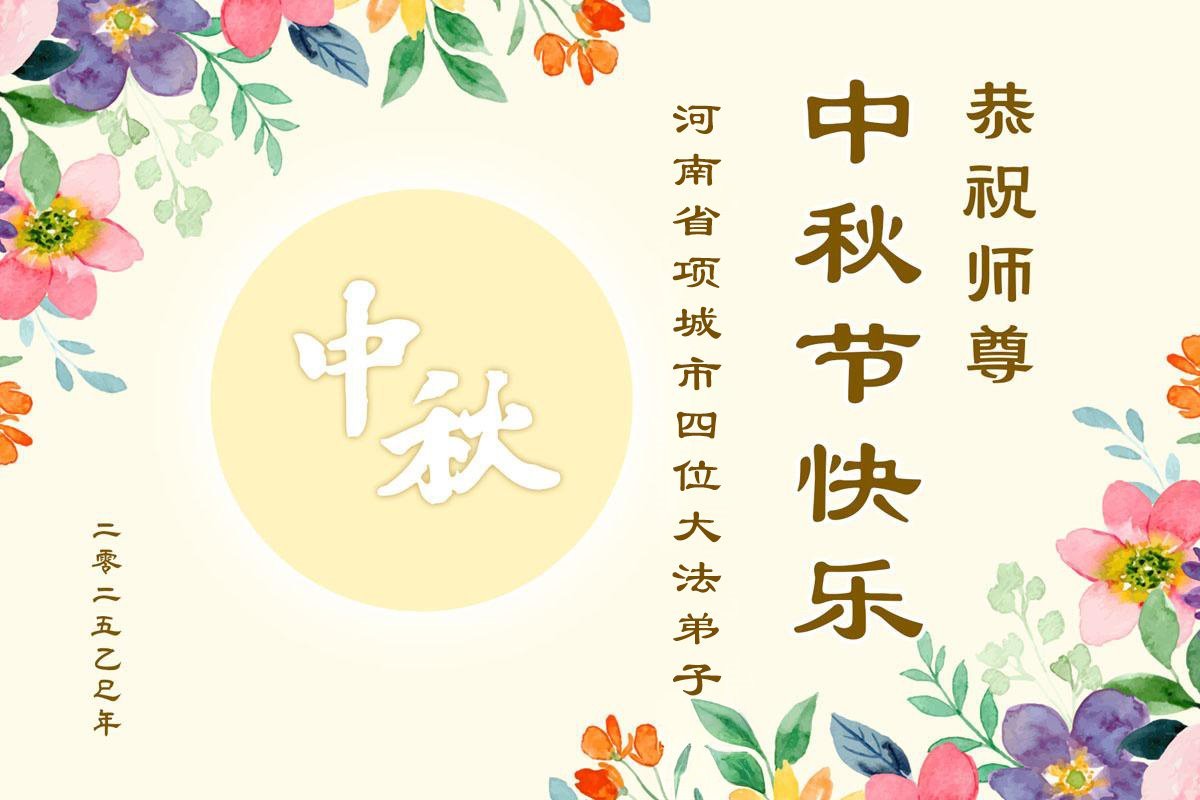 恭祝伟大的师尊中秋快乐! 弟子们要做好三件事,跟随师父回家。 河南省项城市四位大法弟子敬上 二零二五年九月十七日 河南省周口市项城市二位大法弟子恭祝伟大的师尊中秋节快乐!