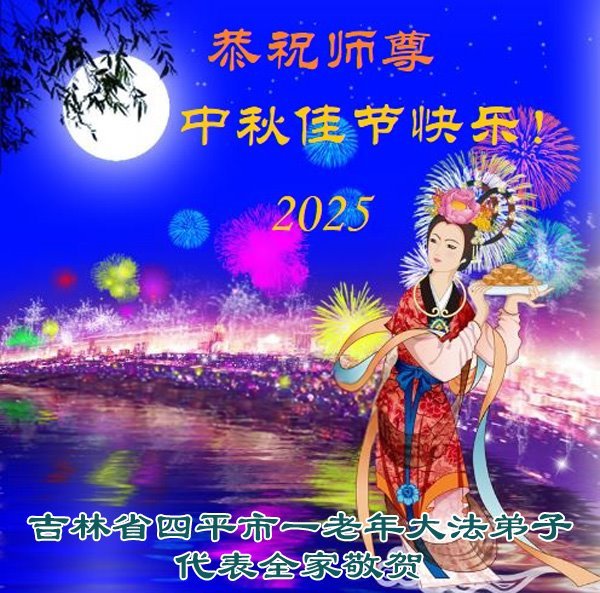 吉林省四平市一老年大法弟子代表全家恭祝师尊中秋佳节快乐!