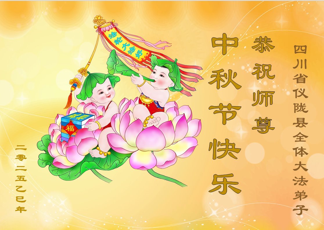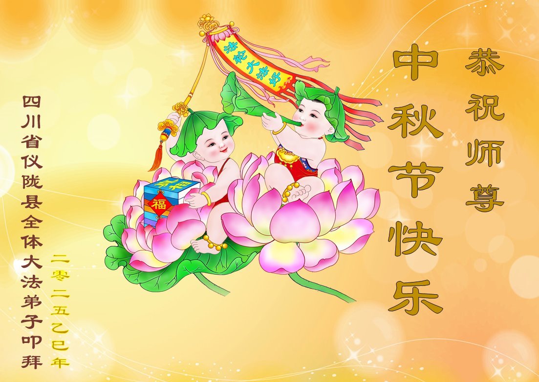 慈悲伟大的师尊,您好! 中秋将至,弟子叩拜恭祝师尊中秋快乐!弟子们一定要始终如一的精進实修,做好三件事,兑现来世的誓约。 再次恭祝师尊中秋快乐! 四川省仪陇县大法弟子叩拜 四川省泸州市一家庭三大法弟子恭祝师尊中秋节快乐!
