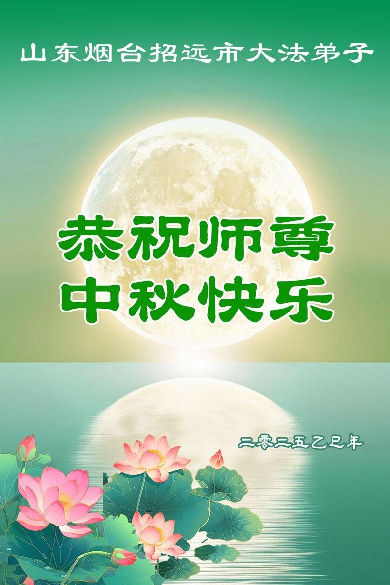 恭祝慈悲伟大的师尊中秋节快乐! 感恩师父的慈悲救度,在师父用最大的付出延续来的剩下不多的宝贵时间里,弟子一定要学好法,遇事向内找,修去顽固的人心、人念,做好师父让我们做好的三件事,抓紧时间多救人,兑现誓约,跟师父回家。 山东烟台招远市一大法弟子敬上 二零二五年九月十八日 山东省烟台招远市一大法弟子恭祝慈悲伟大的师尊中秋节快乐!