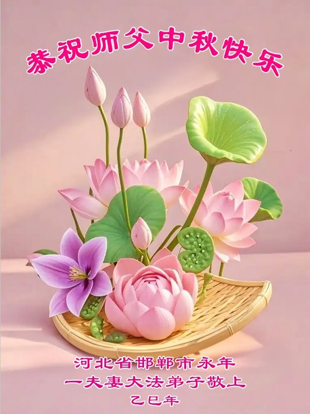 河北省邯郸市永年区一夫妻大法弟子恭祝师父中秋快乐!