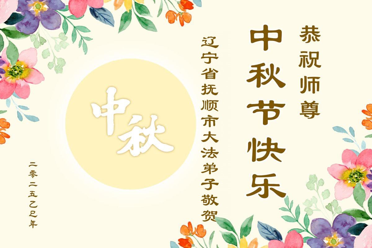 辽宁省抚顺一学法小组大法弟子恭祝师尊中秋节快乐!