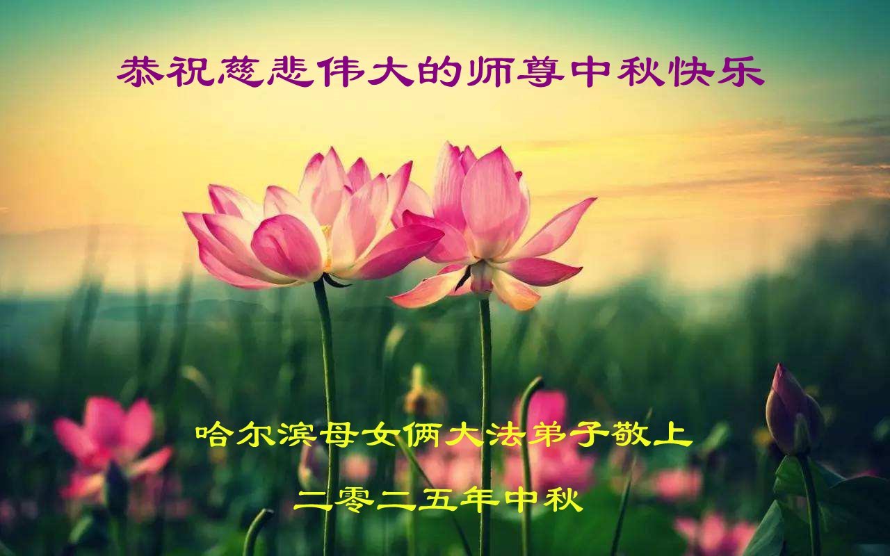 黑龙江省哈尔滨市母女俩大法弟子恭祝慈悲伟大的师尊中秋快乐!