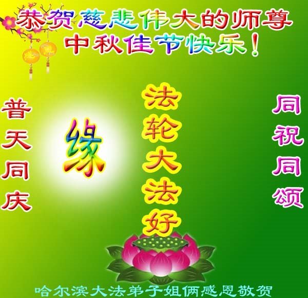 黑龙江省哈尔滨大法弟子恭祝慈悲伟大的师尊中秋快乐!