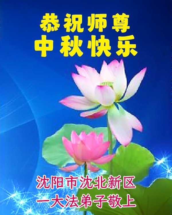 恭祝师尊中秋节快乐! 辽宁省沈阳市沈河区大法弟子敬上 辽宁省沈阳市沈北新区一学法小组大法弟子恭祝慈悲伟大的师父中秋节快乐!