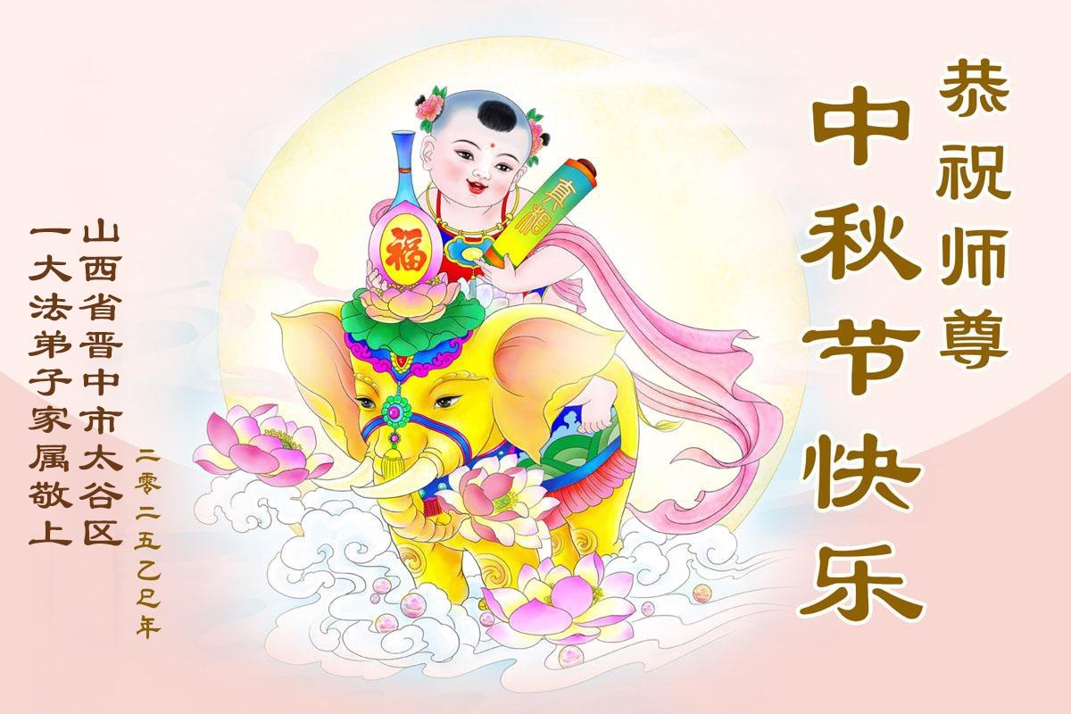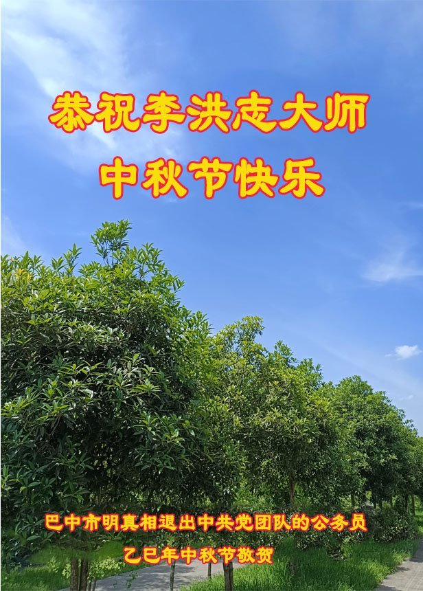 李大师您好!感谢您的弟子们不顾自身安危给我们讲清了真相,让我们明白了共产主义毁灭人类的终极目的,听到了大法的福音,明白了大法被中共迫害的真相和您所遭受的不白之冤,退出了中共的党、团、队,堂堂正正做一个正直的中国人。值此乙巳年中秋,我们恭祝李大师中秋节快乐!四川省巴中市明真相退出中共党团队的公务员敬上 山西省晋中市太谷区大法弟子的家属恭祝师尊中秋节快乐!